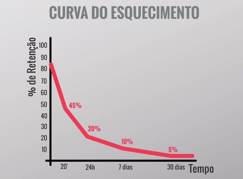 Essa curva mostra como perdemos a capacidade de reter informações com o passar do tempo.